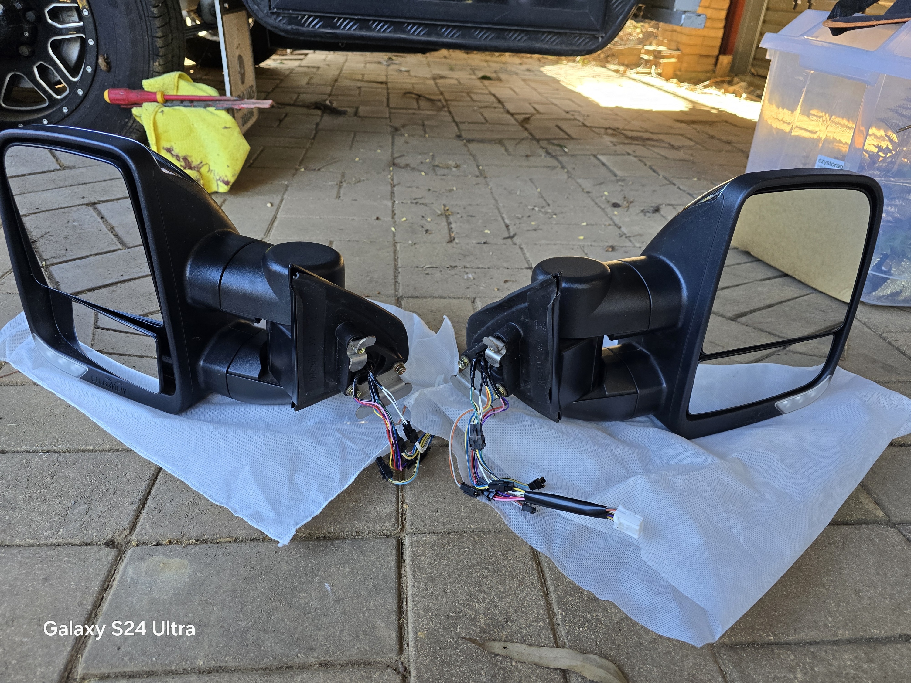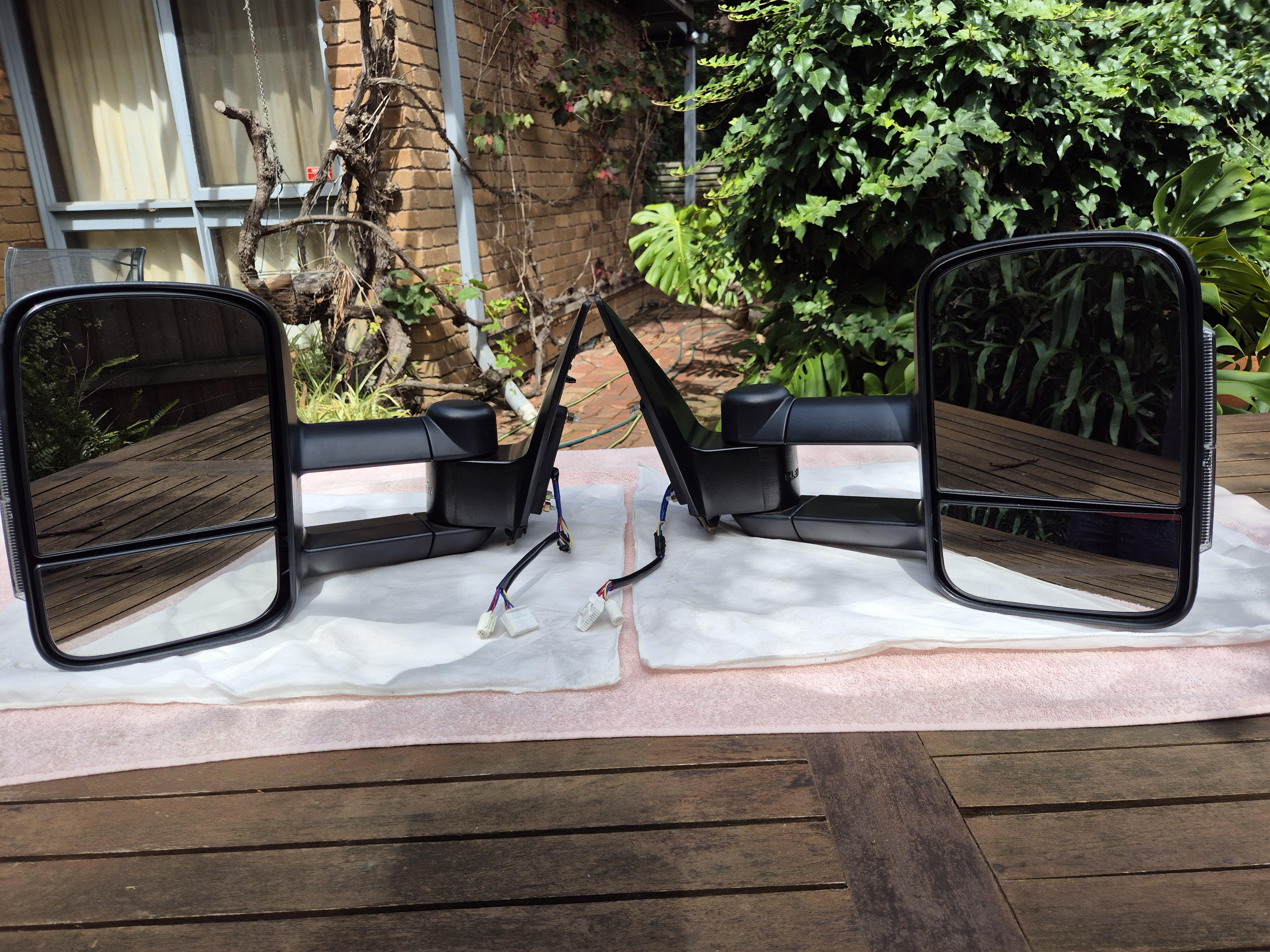Fitted to Nissan Navara D23/NP300. With Heat, Camera, Indicators, Electric in 2023 so we can tow a caravan. They are in great condition. No marks on each side. Selling as we have change vehicle,
