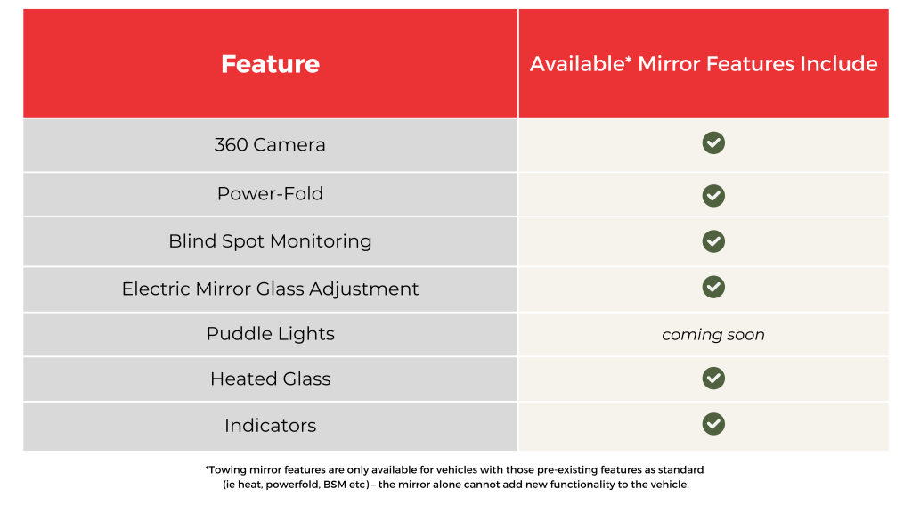 All existing factory mirror functionality is retained when installing the relevant Clearview Towing Mirrors.